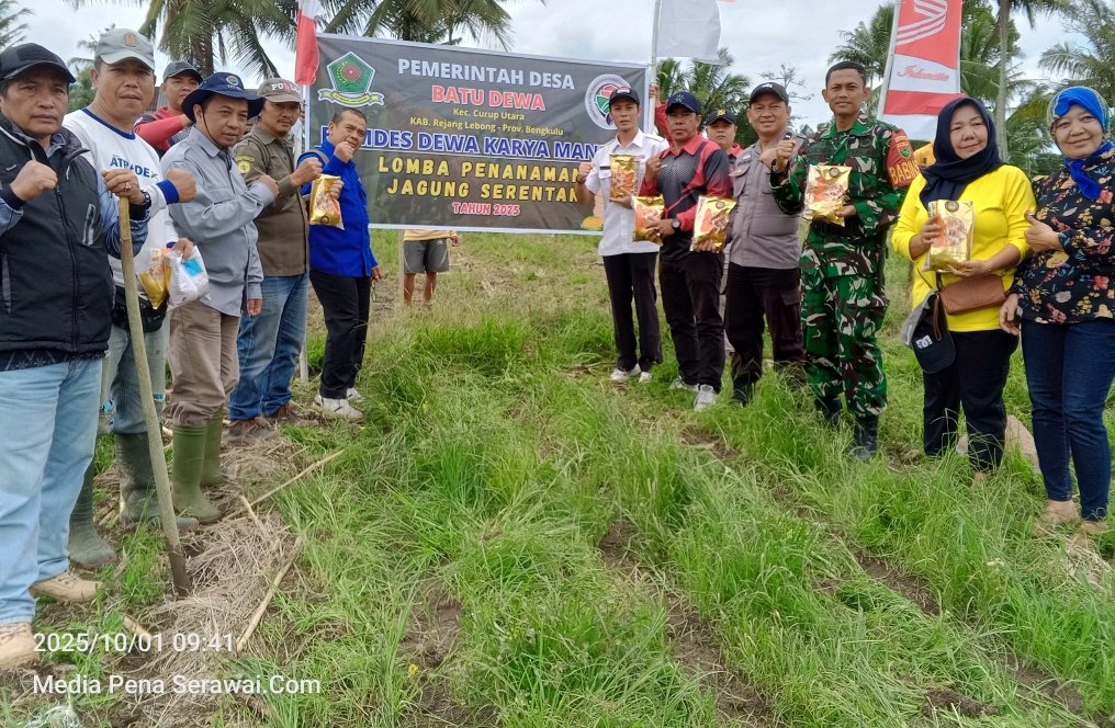 Pemerintah Desa Batu Dewa, Kecamatan Curup Utara, Kabupaten Rejang Lebong, Provinsi Bengkulu, melaksanakan kegiatan penanaman jagung yang merupakan program Ketahanan Pangan Nasional. Rabu ( 01/10/2025).